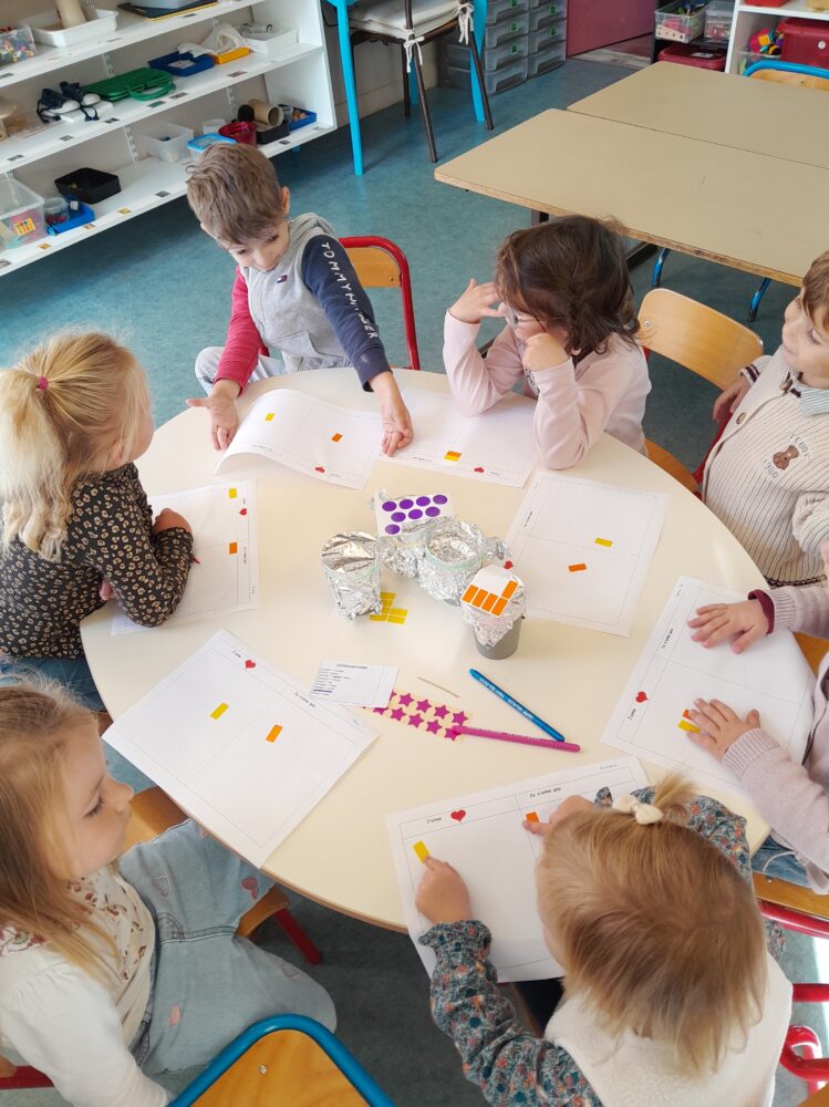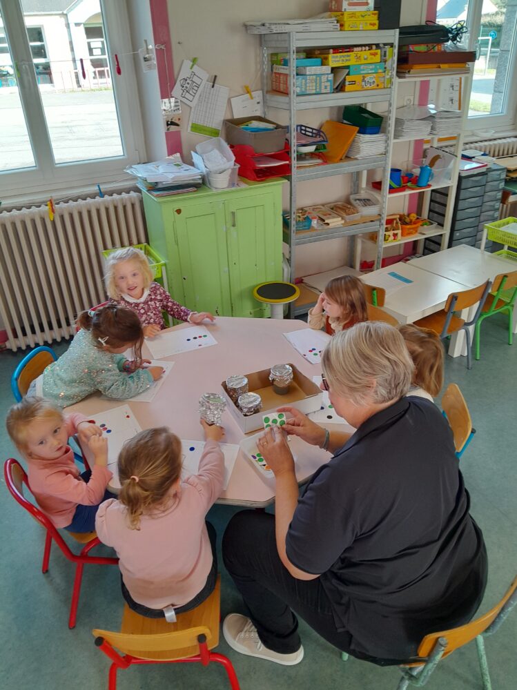 Les PS-MS abordent les 5 sens ( l’ouïe, le goût, le toucher, l’odorat, la vue) à travers différents jeux.